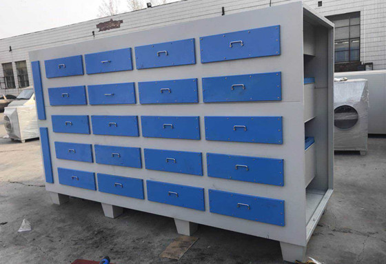 含塵氣體由風(fēng)機(jī)提供動(dòng)力,正壓或負(fù)壓進(jìn)入塔體,由于活性炭固體表面上存在著未平衡和未飽和的分子引力或化學(xué)健力,因此當(dāng)此固體表面與氣體接觸時(shí),就能吸引氣體分子,使其濃聚并保持在固體表面,污染物質(zhì)從而被吸附,廢氣經(jīng)過(guò)濾器后,進(jìn)入設(shè)備排塵系統(tǒng),凈化氣體高空達(dá)標(biāo)排放。